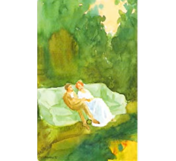 Клиентка: мы видим сад. Дворянское гнездо. Диванчик почему – то в саду, парочка, которая на этом диванчике мило устроилась. Такое спокойствие, умиротворение. Скучно. Так скучно, что даже противно.