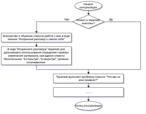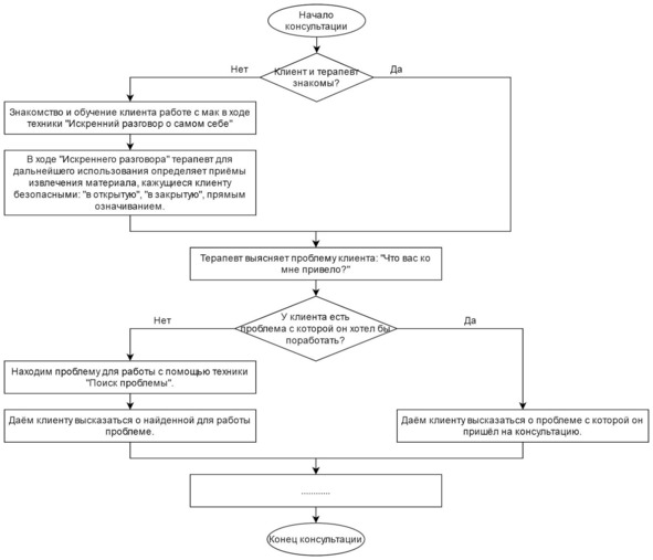 Но не будем исключать, что клиент с терапевтом знакомы или технику уже сделали, то зачем снова знакомится, а перейти к обсуждению проблемы: