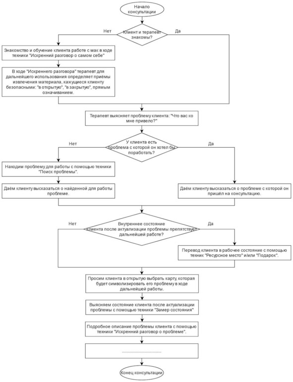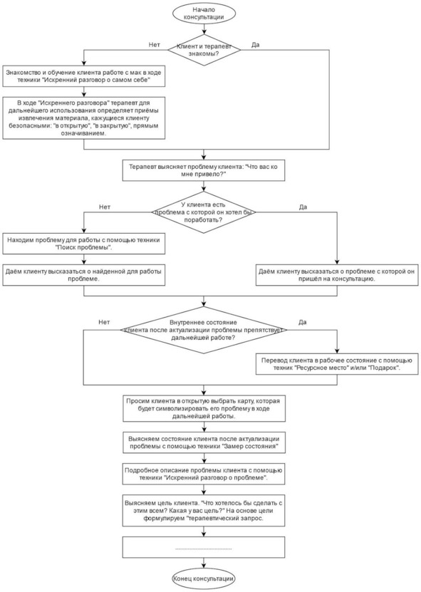 Ещё одна хитрость в том, что при непосредственном означивании даже самому скрытному клиенту необходимо листать колоду и потому ряд карт всё равно вызовет в его сознании материал о его жизни. Часть этого материала представится ему безопасной и он её озвучит. Далее многие успокаиваются и всё же начинают работать в открытую.