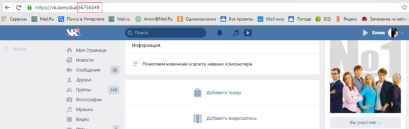 Мы заходим в свое сообщество и видим в поисковой строке адрес вашего сообщества.
