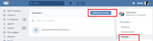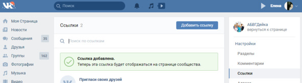 В своем сообществе мы кликаем по кнопке Ссылки. Добавить ссылку.