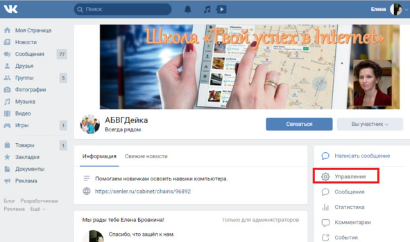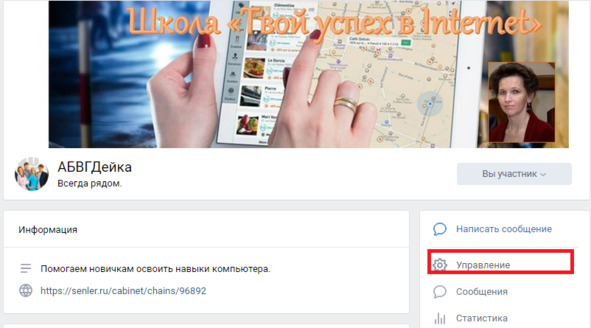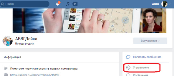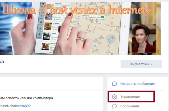 Для этого мы должны установить приложение. Мы заходим в свою группу. Кликаем Управление.