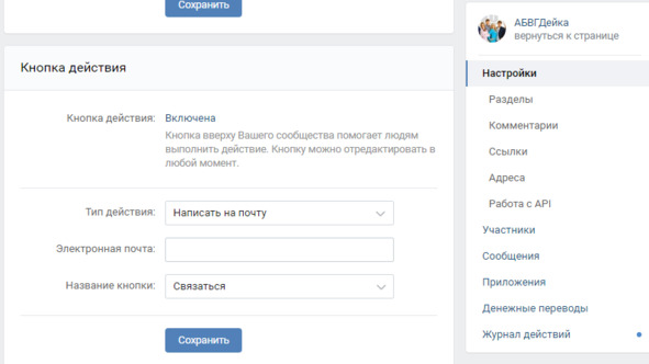 Тип действия-здесь мы пишем как можно с вами связаться (почта, телефон). Если на почту, то указываете свою почту.