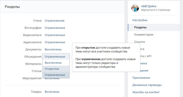 Если мы выберем Открытые, то могут темы создавать и участники сообщества.