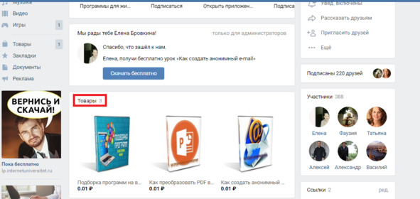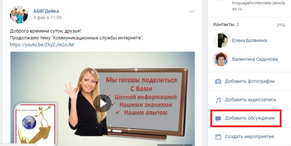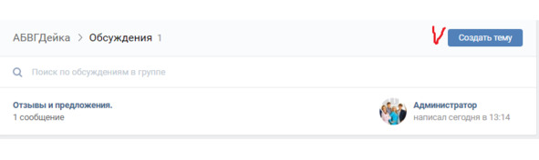 Заходим в свою группу и видим, у нас уже в обсуждении две темы.