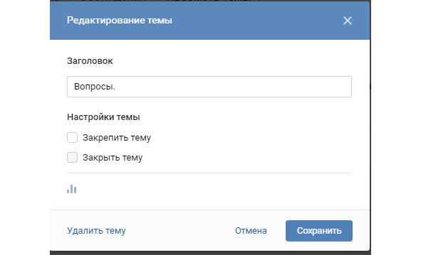 Здесь мы можем тему Закрепить, сделать так, чтобы она была самая верхняя и Удалить.