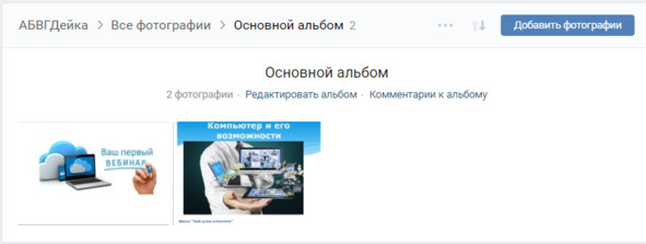 Сюда можно загружать фото: товаров, услуг, тренингов, результаты работы, отчеты от встреч.