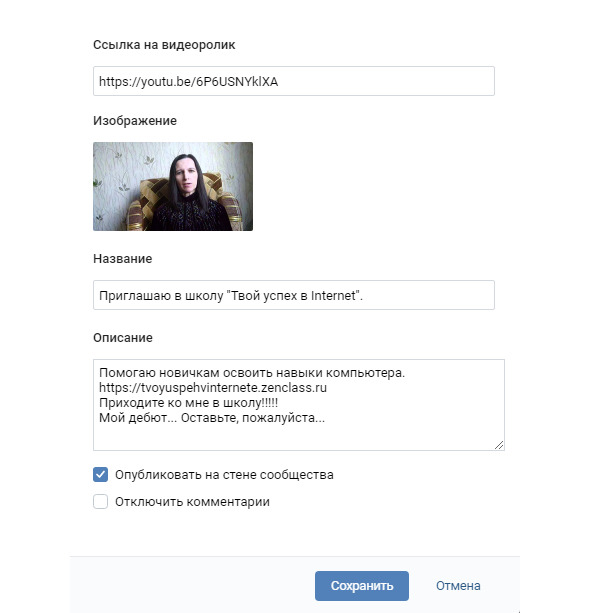 Можно поставить чикбокс, чтобы опубликовать видео на стене сообщества. Кликаем Сохранить.