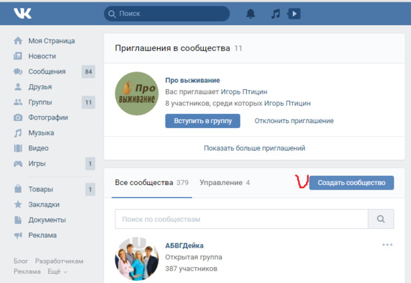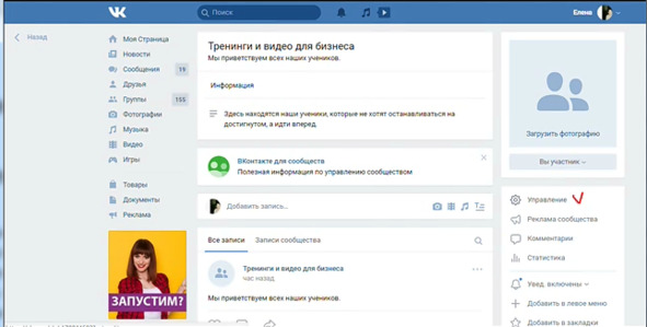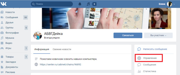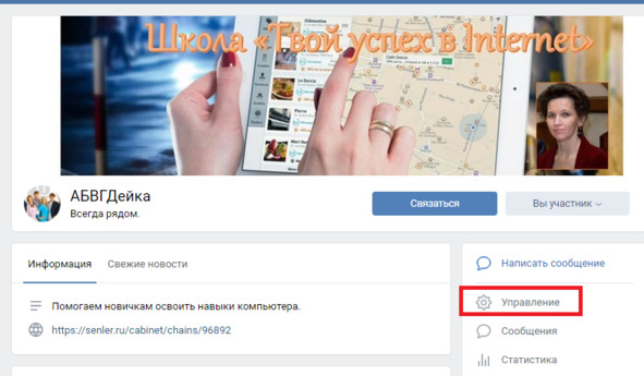 Для этого мы заходим в свое сообщество и кликаем Управление.