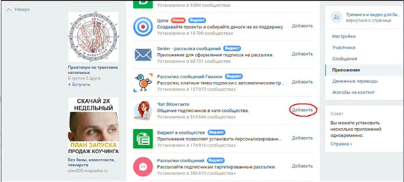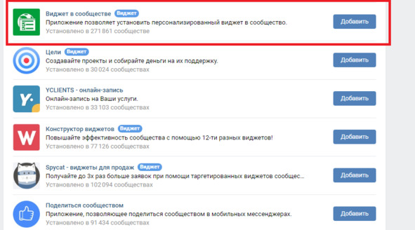 Если вдруг у Вас не открылся полностью список с приложениями, нужно кликнуть Открыть каталог полностью. Выбираем Виджет в сообществе. Кликаем Добавить.