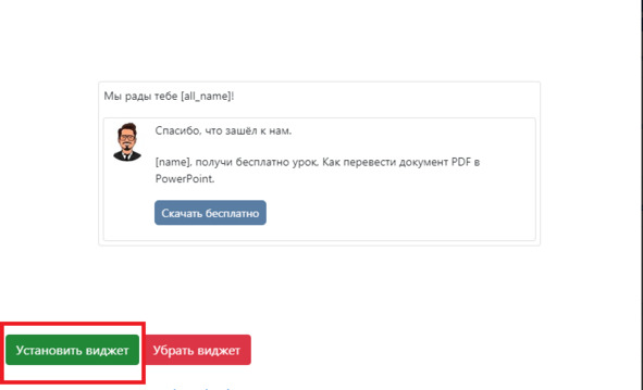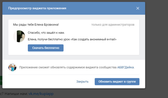 У Вас откроется предпросмотр. Посмотрите, все ли правильно у Вас написано. Если все правильно, кликаем Обновить виджет в группе.