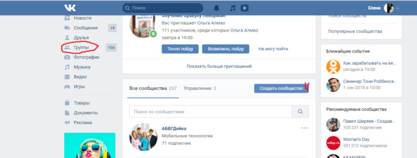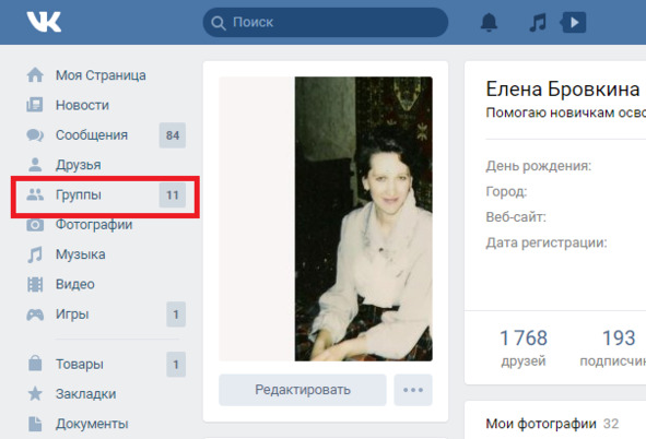 1 способ. Заходим в свой аккаунт ВКонтакте. Кликаем Группы.
