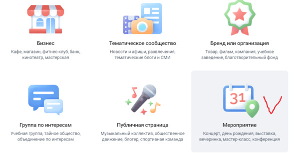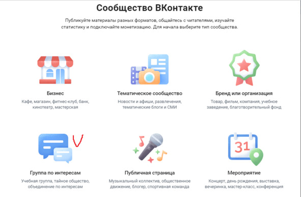 Выбираем какую группу Вы хотите: для бизнеса, тематическую, для продвижения бренда, закрытую или публичную.