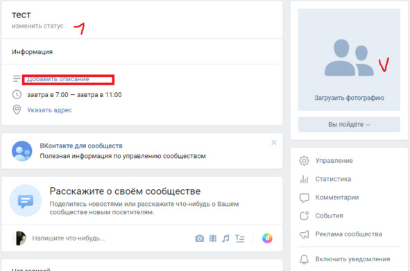 Переходим на главную страницу своей группы и видите, стоит вот такой знак.