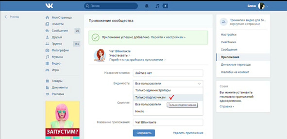 Если на него нажать, то появится вот такое меню, где мы нажимаем Запустить чат в сообществе.