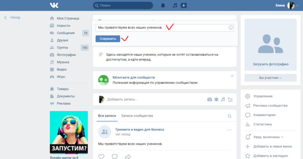 И теперь когда кто-то будет подписываться в вашу группу, будут видеть ваше приветствие.