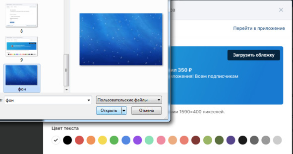 Здесь вы можете загрузить свой рисунок для обложки и цвет для текста.