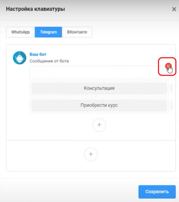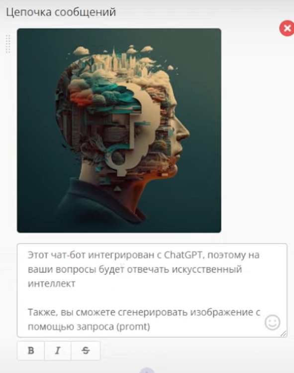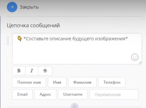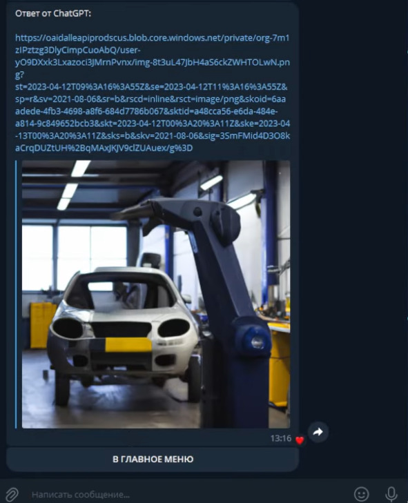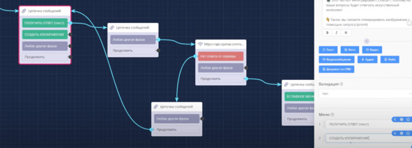 Я возвращаюсь в главное меню (цепочка сообщений), добавляю кнопку Сгенерировать изображение: