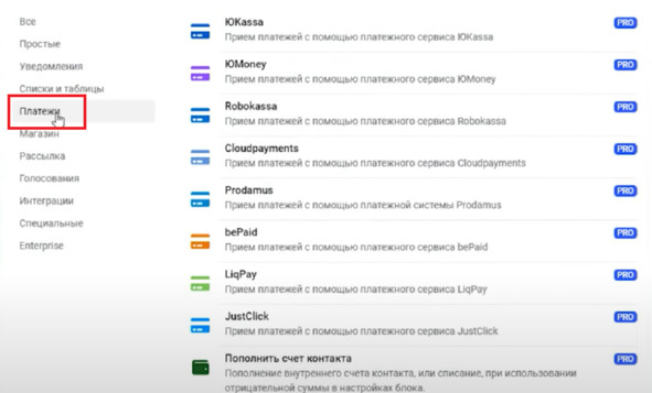 После подключения, нужно платеж настроить в самом сценарии. Кликаю на блок оплаты: