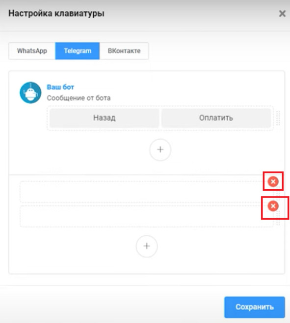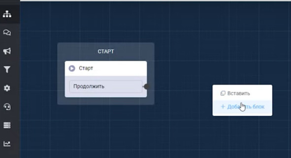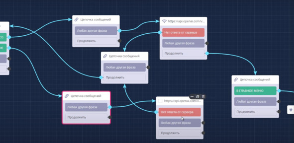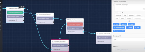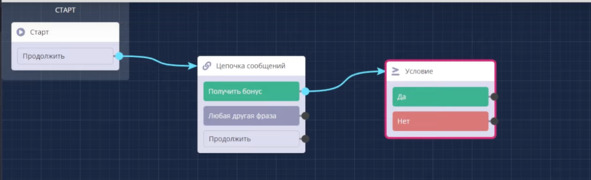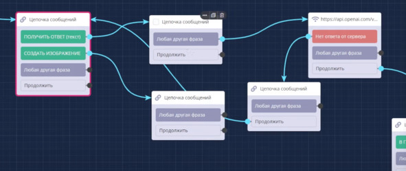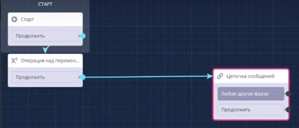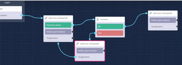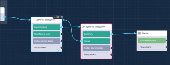 Здесь можно создать блоки оплаты. Ещё мне нужно добавить блок цепочки сообщений, чтобы прописать описание моей услуги. Далее соединяю блоки:
