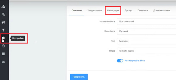 Теперь настраиваю платежные системы. Перехожу в Настройки. Интеграции: