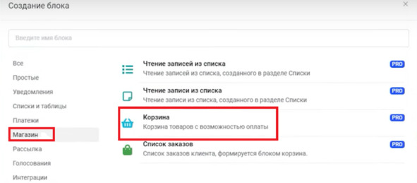 Чтобы создать корзину, я по пустому полю кликаю правой кнопкой мышки и выбираю Добавить блок.