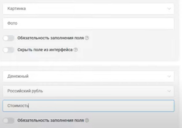 Поле стоимости товара выбираю Стоимость. Поле название товара также выбираю Название. Остальное настраивать не обязательно.