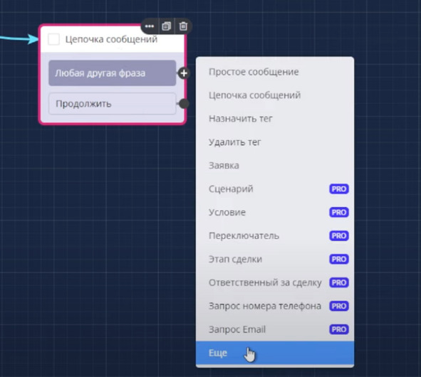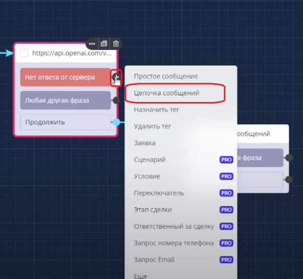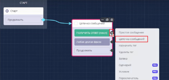 Затем добавляю цепочку сообщений, чтобы протестировать: