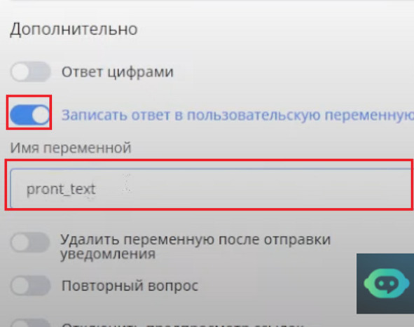 Вместо стрелочек я ставлю точки и придумываю переменную, в которую будет попадать ответ от бота.