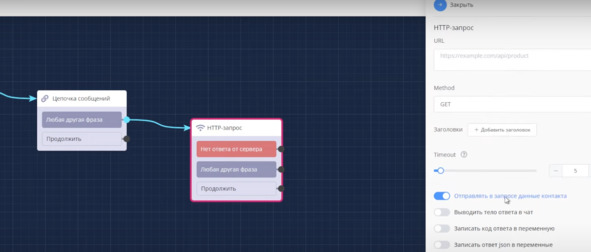 Поэтому в блоке http есть красная кнопка, но это не кнопка, а команда по которой пойдет пользователь, если ответ не придет. Я кликаю на плюсик. Цепочка сообщений: