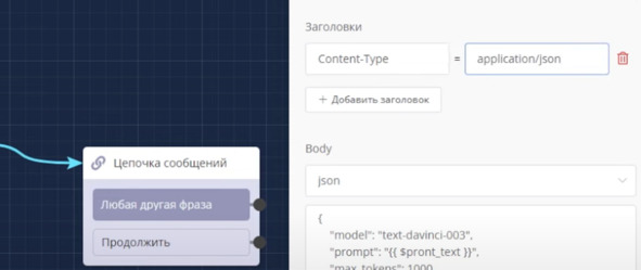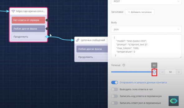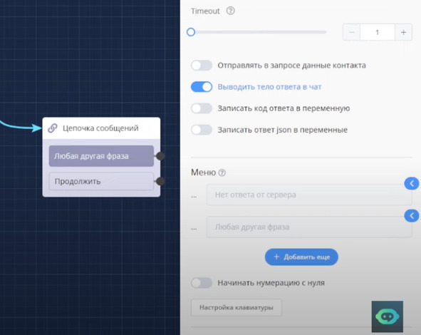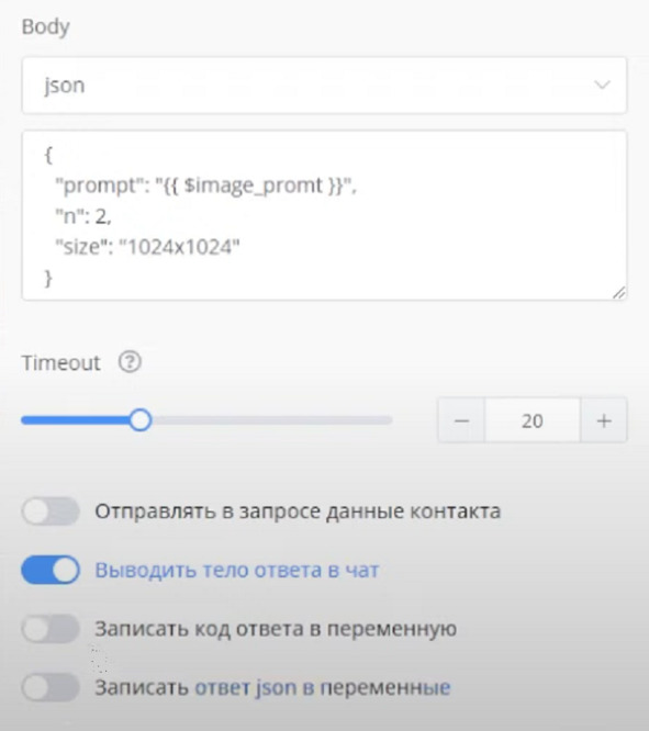 Теперь в блоке http отключаю Выводить тело ответа в чат, чтобы в Боте не видеть эти сообщения.