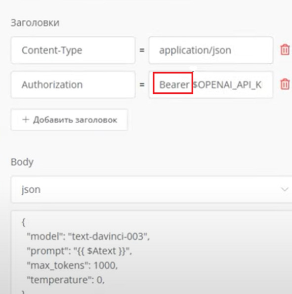 Также очень важно пройти авторизацию. Поэтому я создаю второй заголовок и вставляю значения: