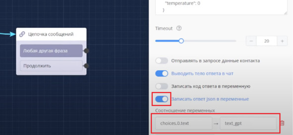 Я ее копирую, перехожу в блок http, включаю Записать ответ и вношу переменную.