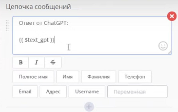 После этого, я около кнопки Получить ответ кликаю на Плюсик и Цепочка сообщений: