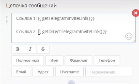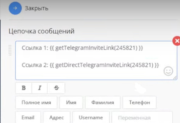 Они обе приглашают, но 2 ссылка – сразу запускается бот, а 1 – предлагается открыть его через браузер. Можно использовать и ту и другую. Также я могу приглашать людей на дополнительные сценарии. В этих формулах есть скобки, в которые можно вставить ID нашего сценария.