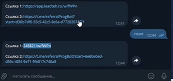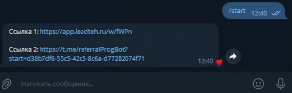 Теперь перехожу в бот, чтобы посмотреть как ссылки отобразятся: