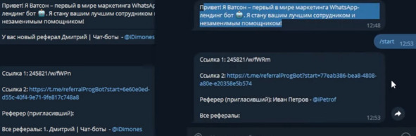 Но есть еще 3 очень важный инструмент – взаимодействия между пользователями внутри Бота. Допустим, я как рефер, приглашаю человека и хочу, чтобы бот мне автоматом начислил какое – то количество балов. Также, к примеру, я хочу этими баллами поделиться с другим пользователем с рефералом, которого я пригласила.