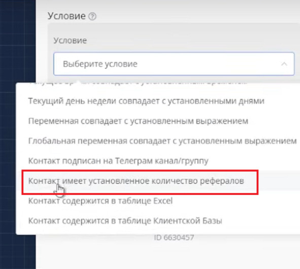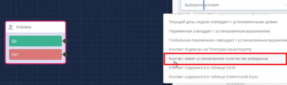 Для того чтобы отслеживать сколько у пользователя рефералов, я создаю блок Условие: