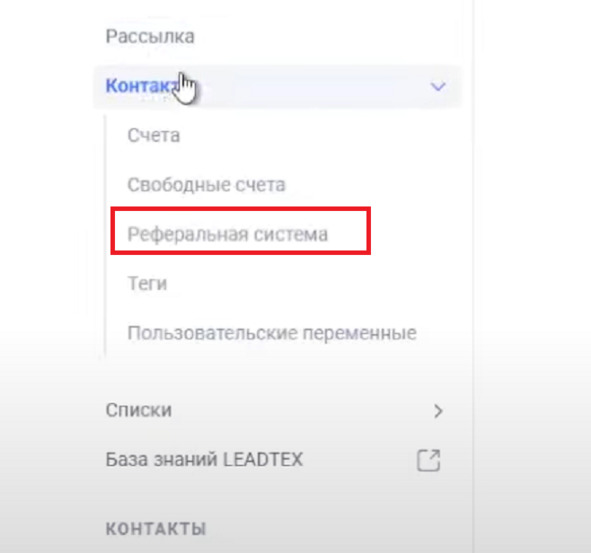 Отследить рефералов можно кликнув на вкладку Списки. Контакты.