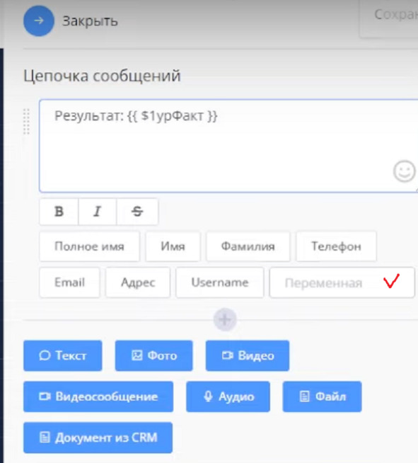 Я создаю блок, кликаю Интеграции. Операция над переменной: