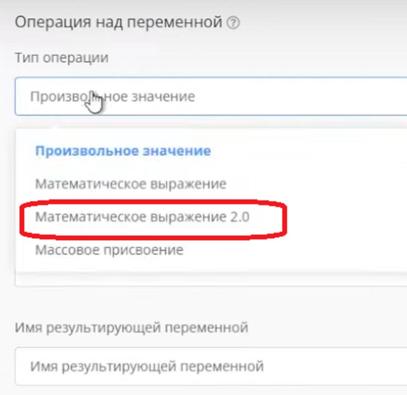 Следовательно в блоке Операции над переменной, выбираю: