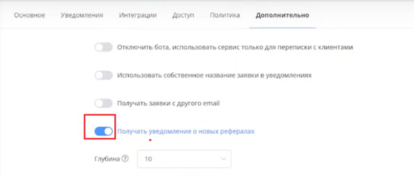 Я для примера поставлю чикбокс и поставлю количество рефералов 1: