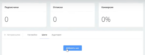 Теперь перехожу в авторассылку, обновляю страничку, добавляю шаг, выбираю: