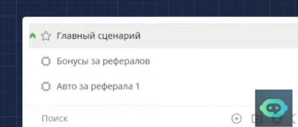 Сначала мне его нужно создать. Я возвращаюсь в Редактор сценариев, кликаю сценарий, добавить авто за реферала 1, кликаю Enter, перехожу в этот сценарий:
