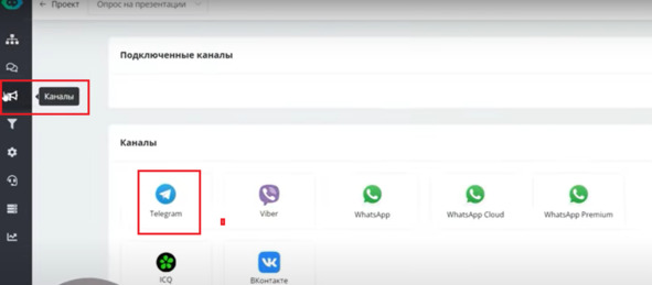 Кликаю Каналы и выбираю Telegram: