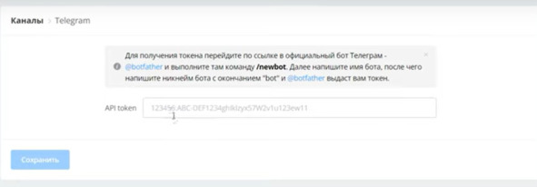 Добавить аккаунт и следуя инструкции перехожу в Telegram в @BotFather. Создаю нового бота и копирую API ключ. Вставляю его в нижнюю строку и сохраняю: