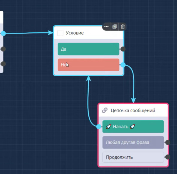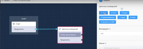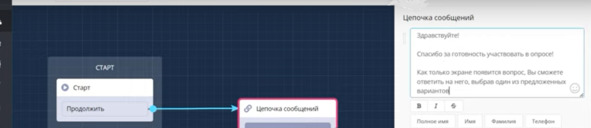 Следовательно от блока Старт, создаю Цепочку сообщений: