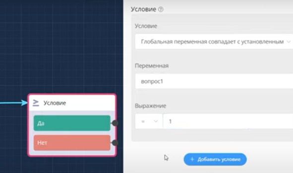 Если условие соблюдено, доступ к 1 вопросу дан, то он идет по ветке Да.