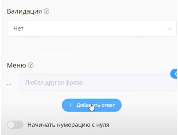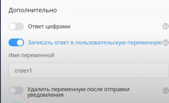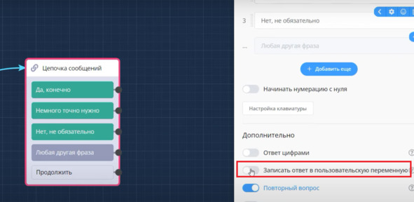 Теперь нужно сохранить переменную ответа пользователя. Для этого включаем: