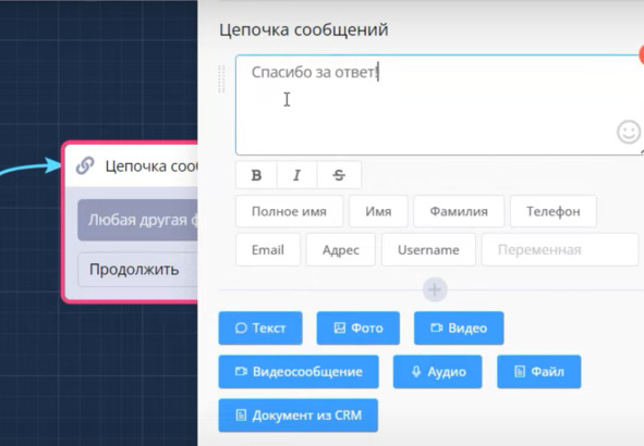 Добавляем цепочку сообщений: